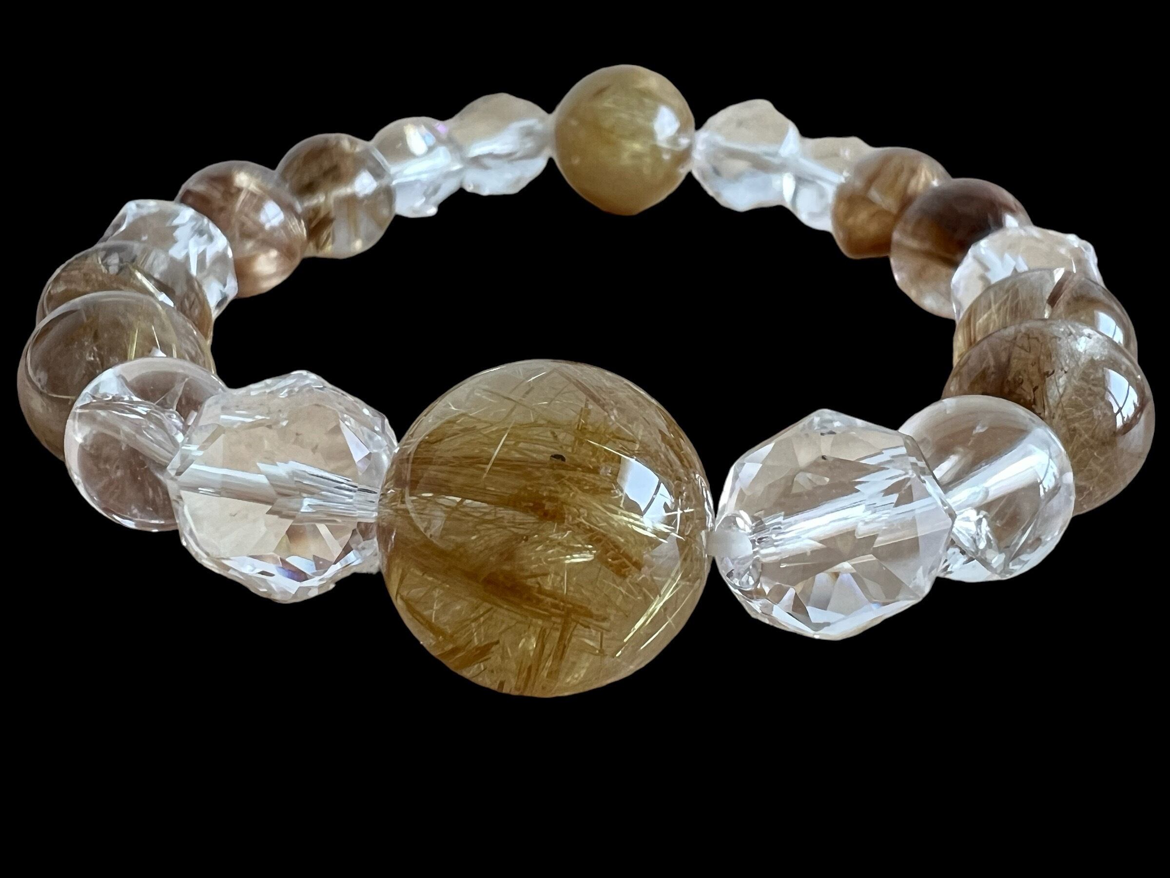 ルチルクォーツ&アイリスクォーツブレスレット。